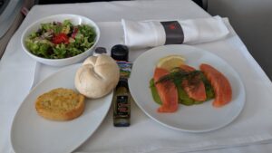 To travel in biz is a whole other experience. Robert, the guy responsible for my section of the plane, asked if he pronounced my name correctly (even though he never used it again). Hot towels before the three course meal served on white linen. Really comfy seat which makes the 8 hour flight feel like a long movie-session at home. And to get a couple of hours of sleep, just lower the seat to a flat bed, pull over a blanket and take a nap.