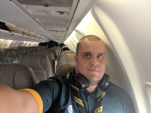 The plane was late to gate but finally got to board this rather small plane, a bit more cramped than biz