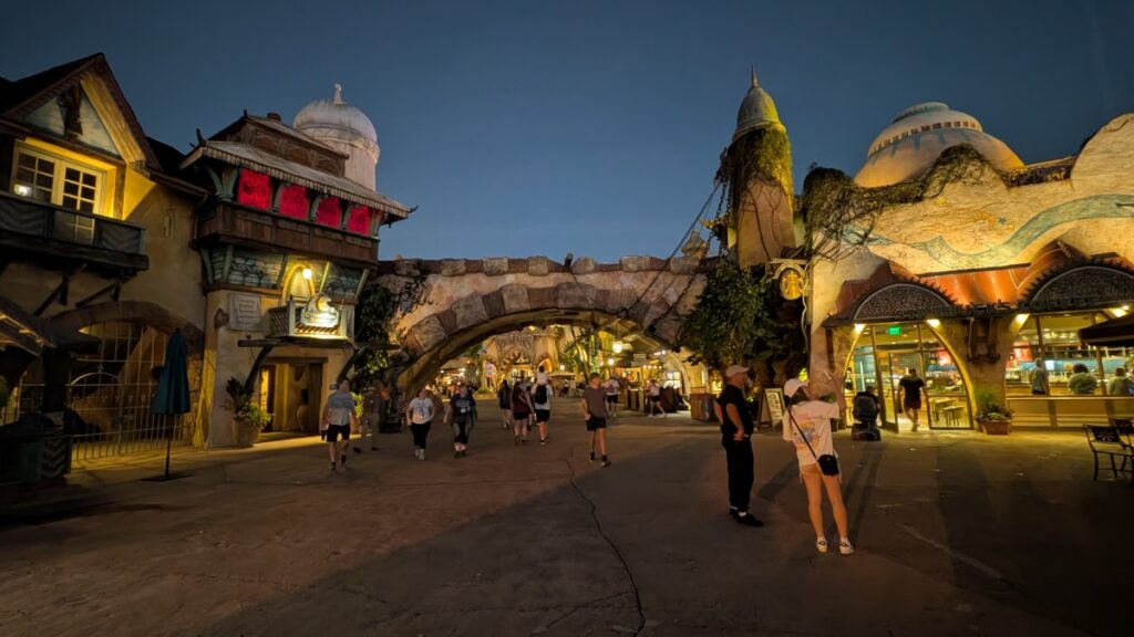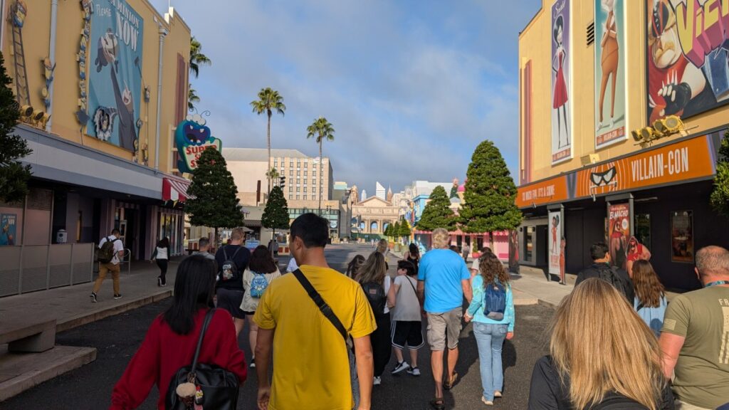 It was a short ride over to the parks, according to Google Maps, about a 25-minute walk. They had the security checkpoint at the bus station. Here, they had an X-ray machine for the bags instead of manually going through them. After a walk across a large bridge, I arrived at the Universal CityWalk. Like a large vestibule in front of two of the parks. Lots of shops and restaurants.