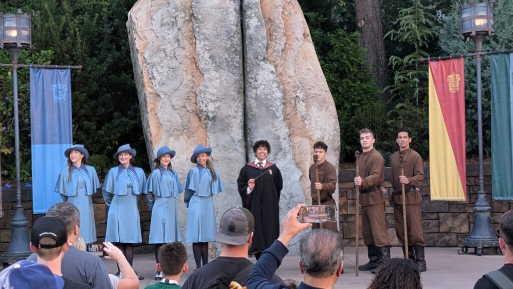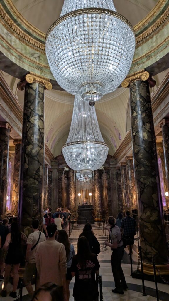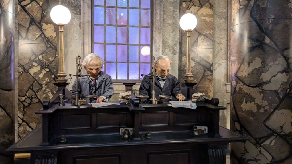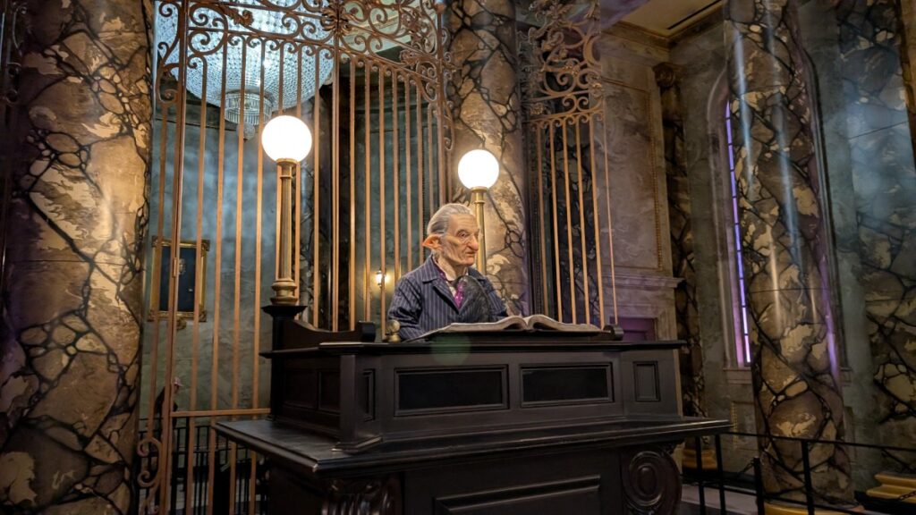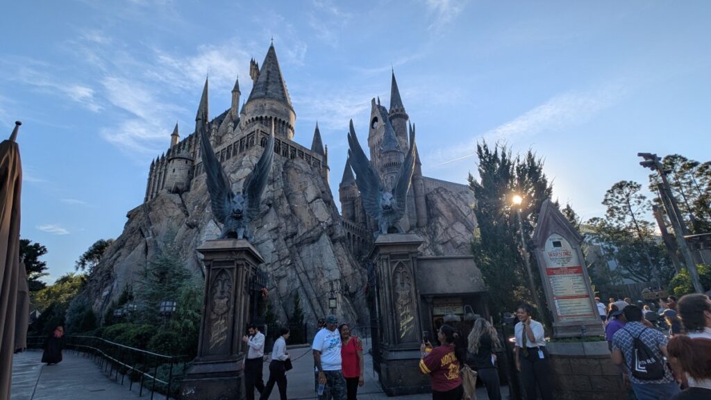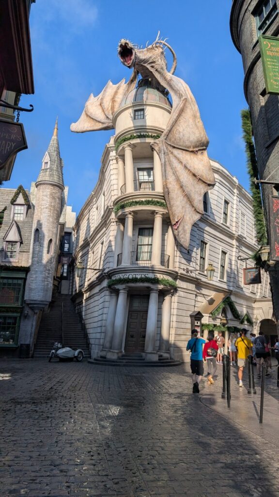The bus ride was chaotic. Screens on both sides and special effects, wind, water, and heat. Fun though! I went for another round of Escape from Gringots, but this time, there were others who had discovered the single riders’ queue. However, just took about 15 minutes, compared to the 45-60 minutes for the ordinary line. Beside me in the cart, I got a couple from Great Britain, in their 70s. “There might be a lot of screaming from here”, the woman said and pointed at her husband. They handled it well πŸ™‚ Since I had done it two times before, I started to look around at the ride and how it worked. It’s amazing how you can trick the body and mind by tilting a cart and showing scenes on a screen.