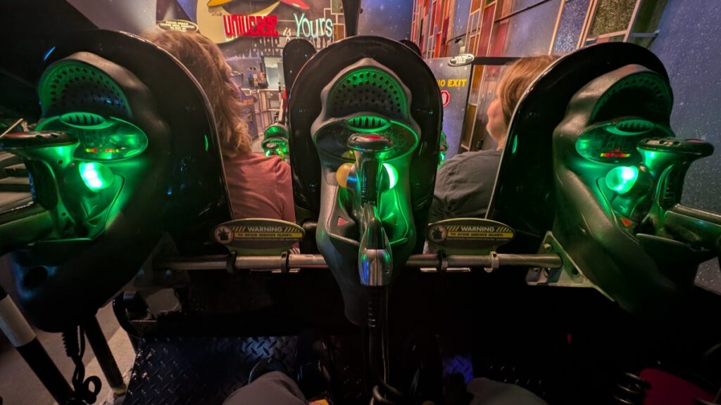 Beside E.T. was the MEN IN BLACK Alien Attack, another ride in USF that required me to put my backpack in a locker. Started with some audio theatrics, and then we jumped into carts where all seats had laser guns. Since there was no queue, we didn’t get time to listen to the instructions on the screens; we just walked by them. Not easy to aim, so I tried to shoot everything. The cart spun around frequently, and I ended up with 176k points. I wanted revenge, so I went for a second round; this time, I got 290k points.