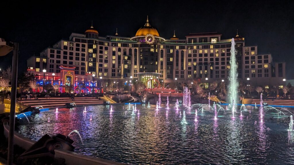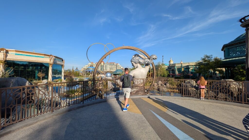 I decided to stay in the zone anyway, hoping the technical issues would be resolved quickly. I took a lap and took some photos, and then sat down on a bench at the ride entrance, starting to read news from back home. At 9:30, they started to run empty carts, which was hopeful, and I joined the queue. Ten minutes later, they opened to everyone’s cheer. I got on the third ride, but almost didn’t get to go. I couldn’t push down the safety bar as far as they liked. It’s hard to push the bar down on your lap since you don’t get that much power. I asked if he could press, but he said no (probably some rules prohibiting it). I got asked to stand up, cross my legs, and, while sitting down, push down the bar. Apparently, it got far enough down cause he gave the thumbs up, and we were on our way. It was quite a fun ride! Just the right amount of rollercoaster for my taste. I would have gone for a second round if it weren’t for the tight fit in the cart.
