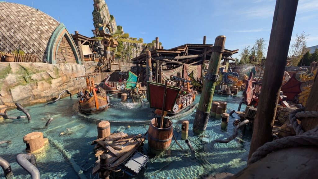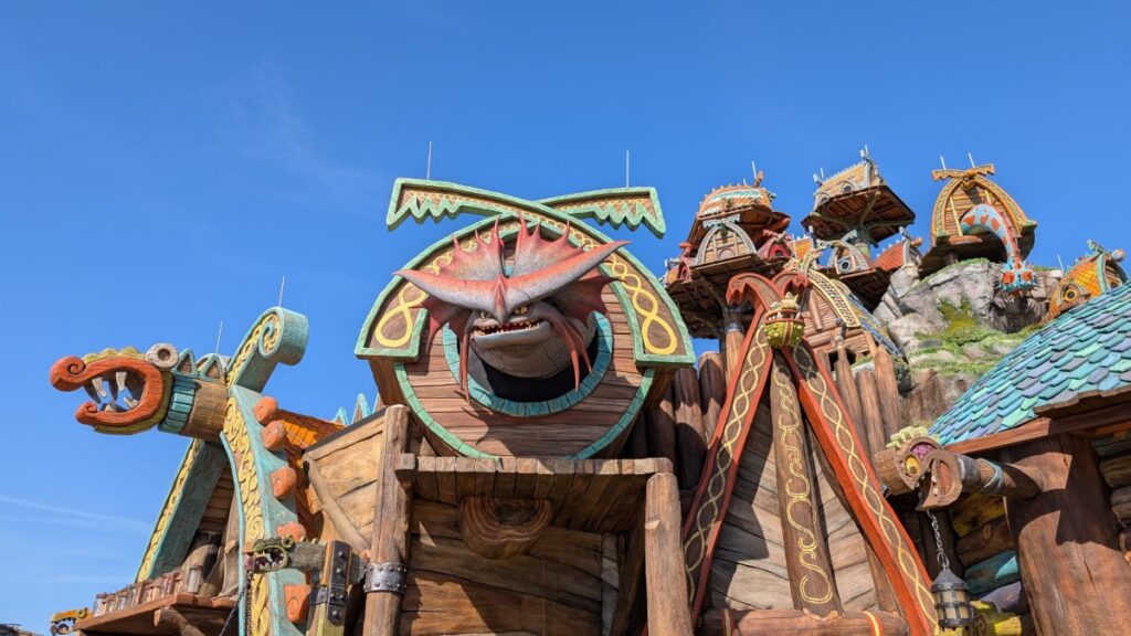 I headed over to The Wizarding World of Harry to start queuing for Harry Potter and the Battle at the Ministry. But when I arrived, there was a line that went through almost the whole zone, and when I checked the app, it said it was closed for the moment. So I moved on to How to Train Your Dragon – Isle of Berk to check the attractions there. I had looked into Hiccup’s Wing Gliders, but when I saw it in action, I got discouraged and skipped it. I found Fyre Drill instead, which I had disregarded during my research, cause it said you would get soaked! But when I saw it, it didn’t look that bad, and with no queue, I went for it. You go on a boat, shooting at targets with water cannons. If you hit the wrong targets, you get punished, but did well, I only got wet from sitting on the bench that wasn’t dry 😛