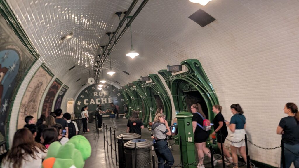 The ride was great. Both cinematics, animatronics, and the cabins’ movements, fantastic! But not worth just over three hours in line. The only positive thing about the queue was the family of four with twins, with whom I talked to a bunch during our time together. We speculated on how much time was left, what happened around the next corner, why there wasn’t any information about progress, and so on. Very nice people.