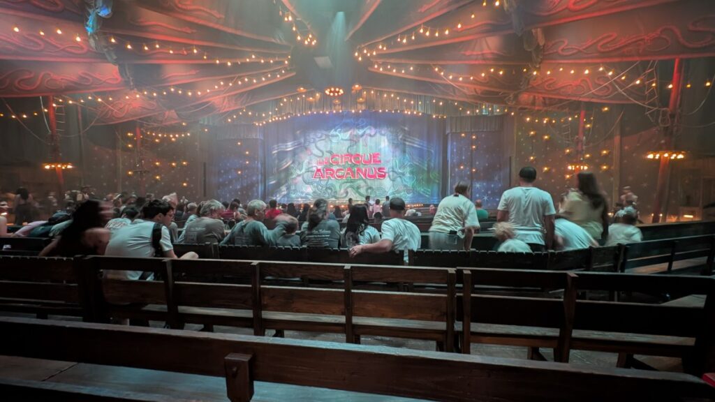 I had gotten hungry and was looking for some dinner, but realized that Le Cirque Arcanus would start in half an hour, and I wanted to see that one. I found a store that sold some candy and then got in line for the show. While waiting for the doors to open, I sat down on the floor; my feet needed the rest. When we got in, to my disappointment, there were no chairs. But, a few minutes into the show, we moved into a theatre and there were benches! It was a great show, and I’m happy I saw it.