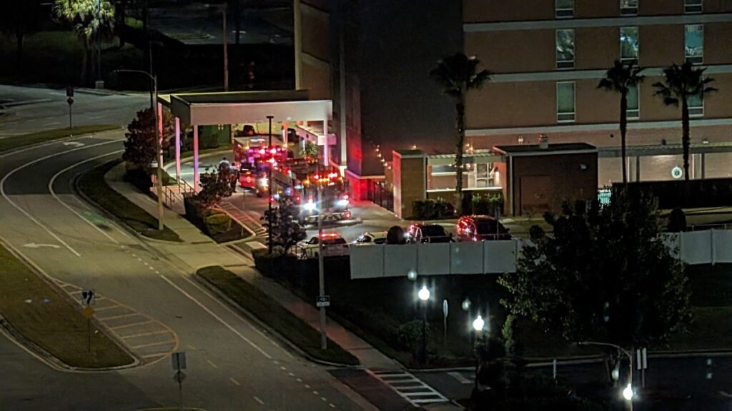 The night ended with some drama at the neighboring hotel, with the Orlando Fire Department visiting with lights and sirens. Didn’t see any smoke or flames, and they left after a while, so I suspect some automatic alarm that went off.