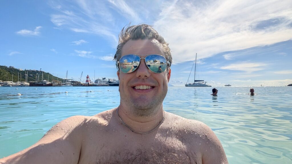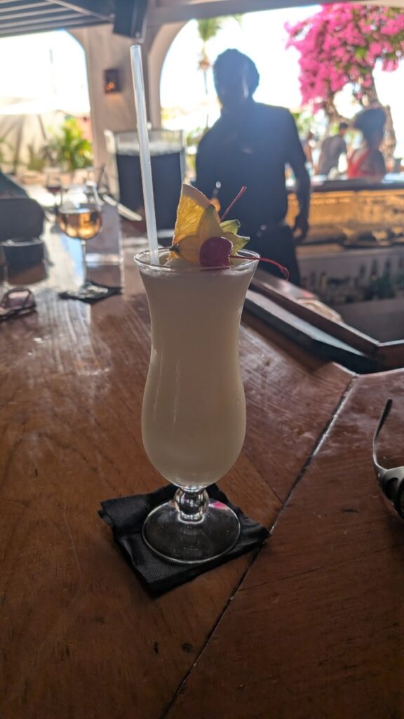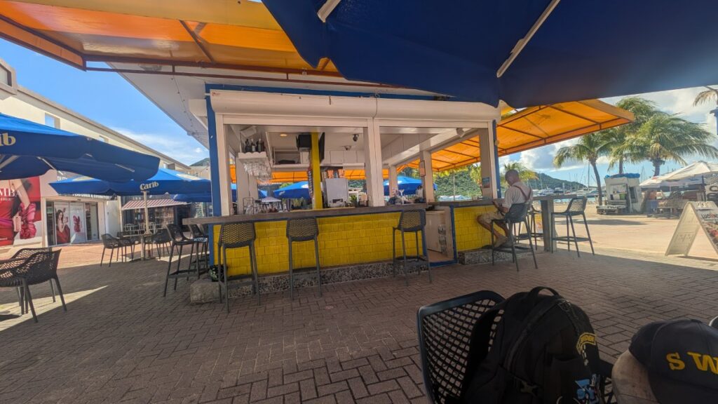 The bar had opened, so I bought a Coke. I paid by card and realized I didn’t know if it was Euro or USD. When I checked the receipt, it said 2,5 USD. The Dutch side uses USD, but the French side of this island is run on the Euro.