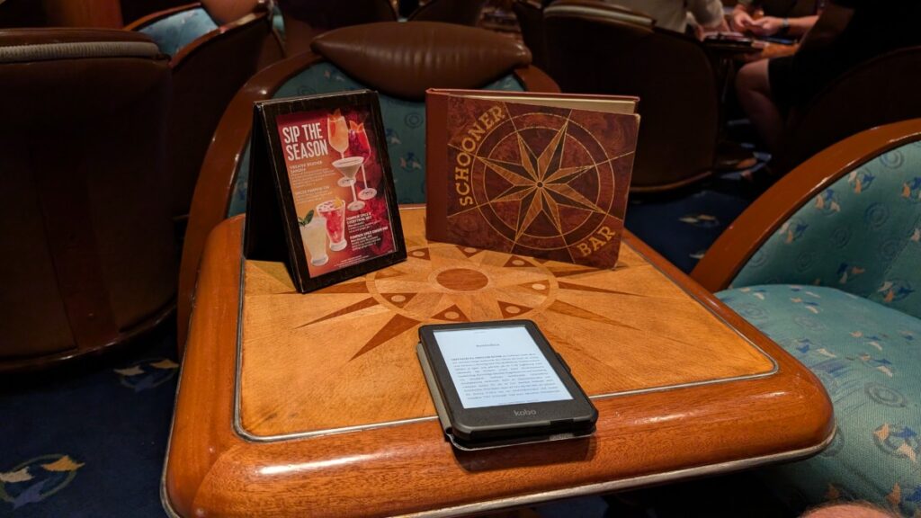 Hung out a while in the Schoomer bar, reading before going to the Coral Theater for a show with Tape Face. A really funny and entertaining hour.