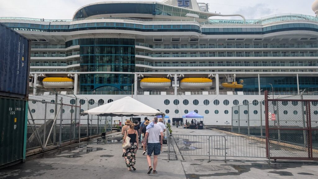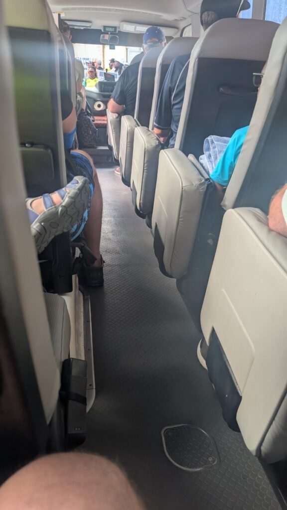 After a bit of information (“Double- and triple-check that all in your party have your SeaPass with you!”), we were guided off the boat one group at a time, and got onto buses, got a guide, and then we took off! I was in the back with a family of four, and we kept each other company during the bus rides. When we got off the ship, it had started to rain, very lightly. First time during this trip, I think. But still warm in the air, so it wasn’t a problem.