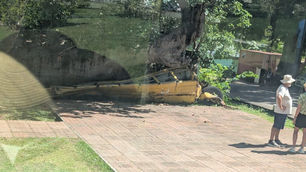 When I got back to the parking lot, I went through the small shops that were there and found myself a mug made of coconut, and they took credit cards. Nice to have it done already! We got on the bus again and left at 10:15. We went back all the way to the ship, or rather, passed it. The guide didn’t seem to be the most organized. Before we left the parking lot, she asked if anyone was missing anyone. A terrible question for us traveling alone. I don’t think we forgot anyone, at least. Also, when she spoke with the driver, she didn’t turn off her microphone, so we could hear half the conversation.