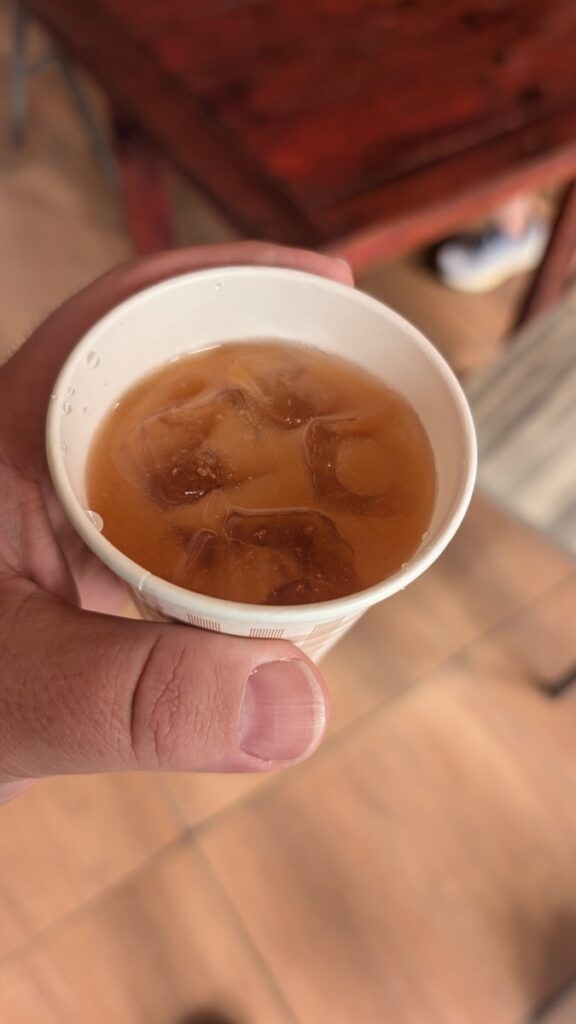 Then off to another pitstop, where we were offered a complimentary drink. On the other hand, access to the restroom costs $2. It keeps raining back and forth, sometimes quite heavily.