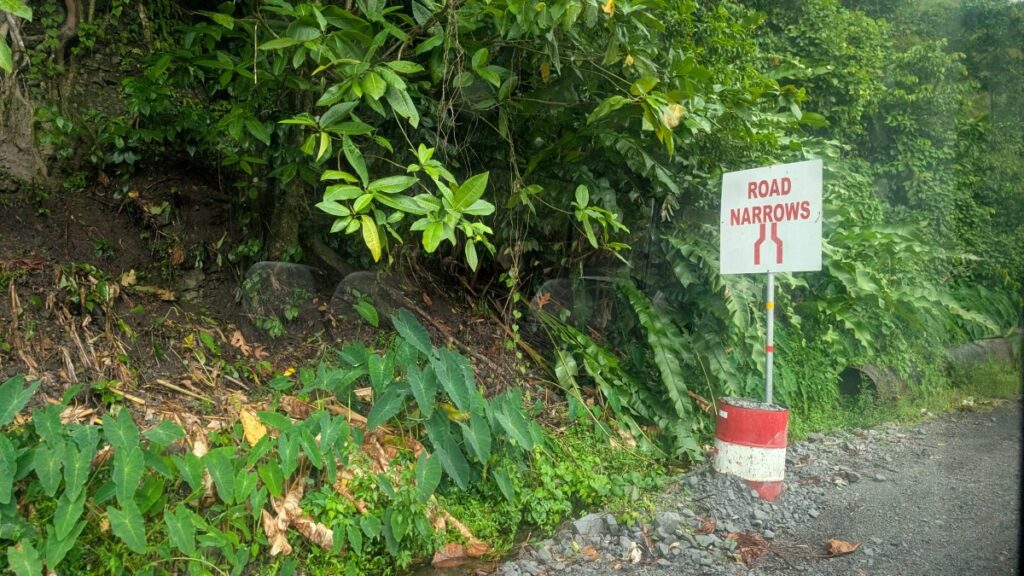 At 8:35, we left the docks and were on our way. Our guide told us a bunch of stuff during the rides; a couple of things stood out. First that Dominica has nine active volcanoes! The other was the quote “Driving on Dominica is an adventure”, and I couldn’t agree more. Quite a lot of traffic downtown, but still organized, then we got up in the mountains. Small roads. Fences are at roughly 20% of the road, even with a 10-meter slope just outside the asphalt. Small cars, buses, and large trucks meet, at fairly high speed, even in tight turns.