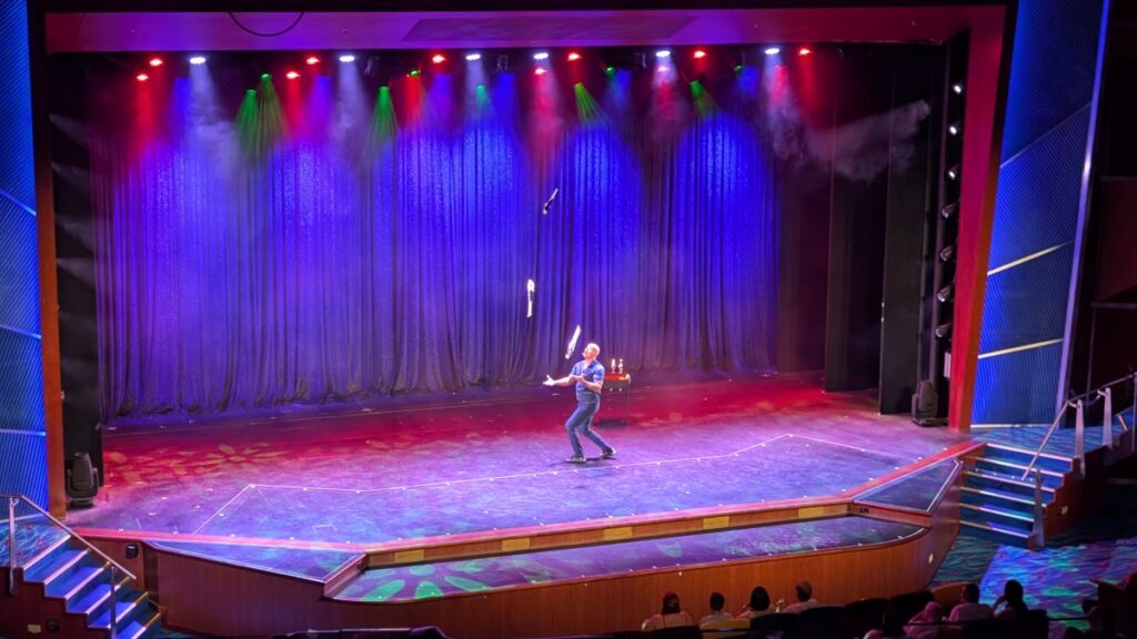 Moved into the Coral Theatre to watch Manuel Zuniga, a comedian and juggler. Pretty funny and a rather impressive juggler, as far as I can judge.