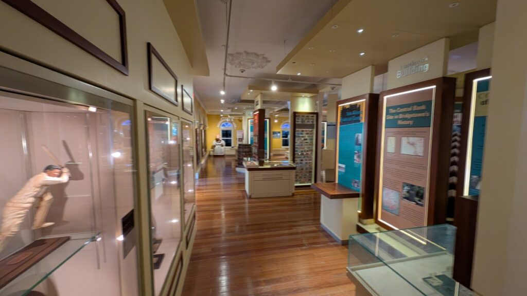 After half an hour, I had reached the destination I had in mind, the Exchange Museum. It’s next to the central bank, so there were a few guards outside from G4S. Even though it was cloudy outside, it was still quite warm, so stepping into the AC-controlled environment of the museum felt pretty nice. Paid the entry fee of BDS$20, and then she escorted me up to the second floor. I guess they don’t get that many visitors. I was alone the whole 45 minutes I spent there.