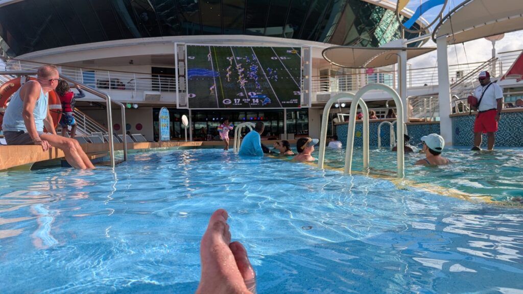 At halftime, I quickly went down to my cabin and dropped off my stuff, so I could get into the pool. During the second half, a couple of Lions fans made themselves known, and especially a woman was quite loud with her “Let’s gooooo!” every now and then.
