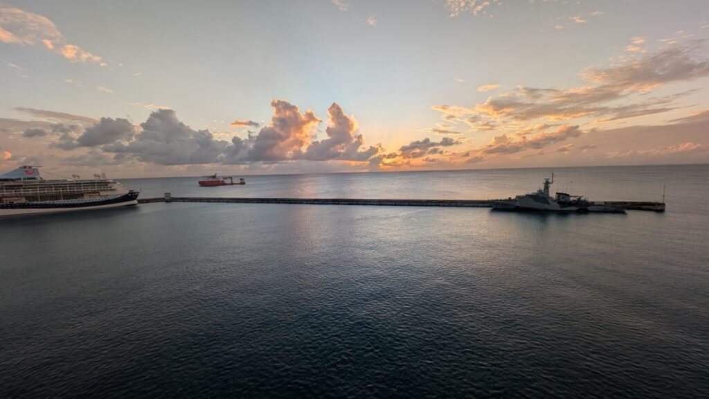 The view from the ship in this port wasn’t as good as in St Croix, but we found a navy vessel as in St Thomas.