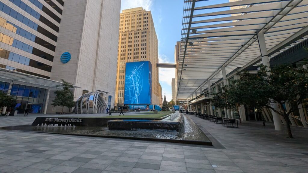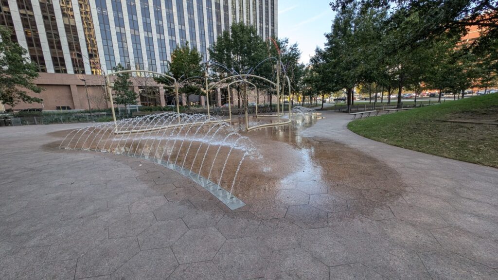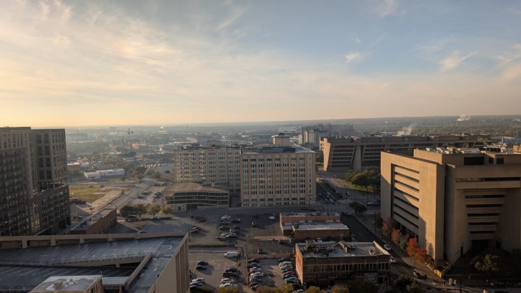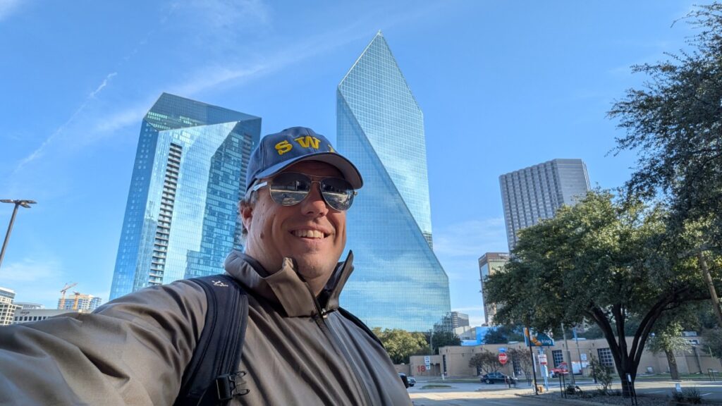 I went down to the second floor and ate a good breakfast. It’s nice when it’s included and somewhat proper. I even got a large waffle! Around 9:30, I left the hotel on foot for a 20-minute walk to the Perot Museum of Nature and Science. I managed to almost miss a couple of “green lights” for pedestrians, and I realized that there is no sound signal when it switches. In Sweden, you get a slow sound when it’s red, and a fast one when it’s green. Then you can look at your phone and notice when you can walk.