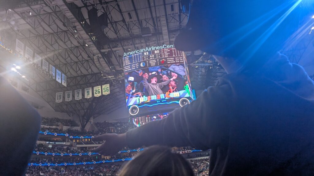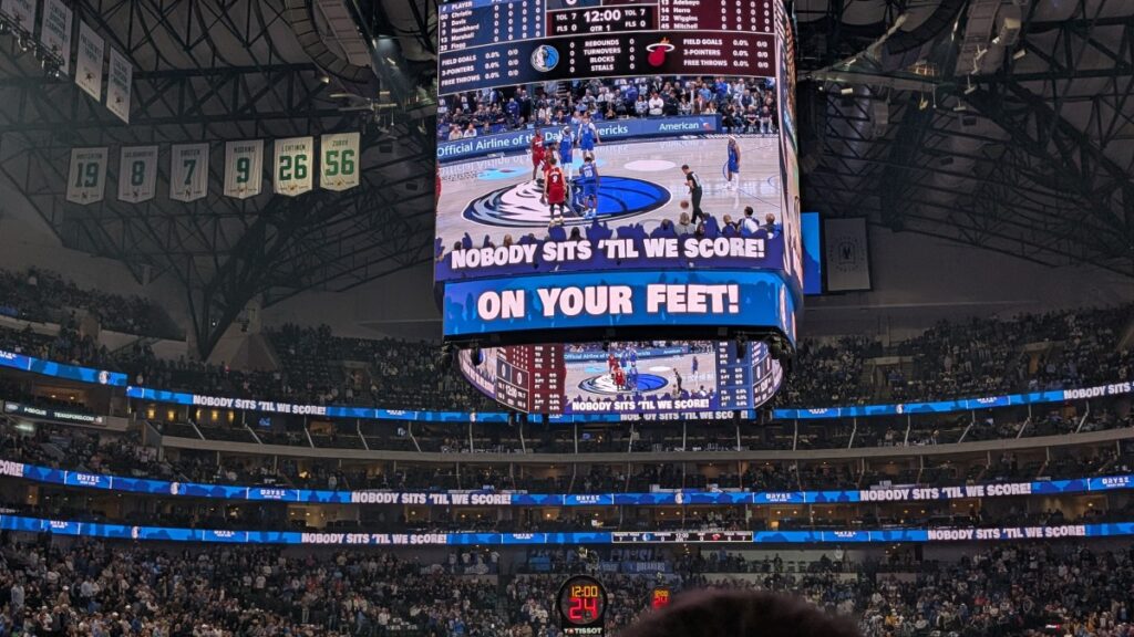 - There was a guy using the speakersystem to get the crowd going, all the time! D-fence! Let’s go, Mavs. All in coordination with the drums on the speakers as well. On the other hand, if he didn’t say anything, the crowd got silent.