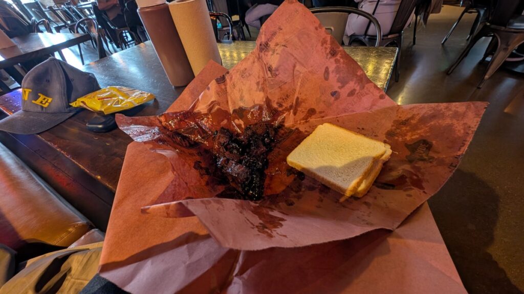 I went back to Live! By Lowes to get some lunch before heading back to Dallas. Google Gemini had recommended Lockhart Smokehouse, and I got today’s special, burnt ends. Really good! The place itself was pretty good-looking and had a nice atmosphere. Watched the second period of Leksands IF and Brynäs IF, but it didn’t give me any joy.