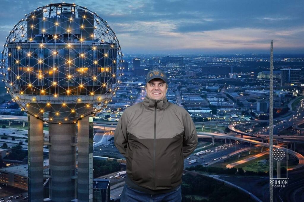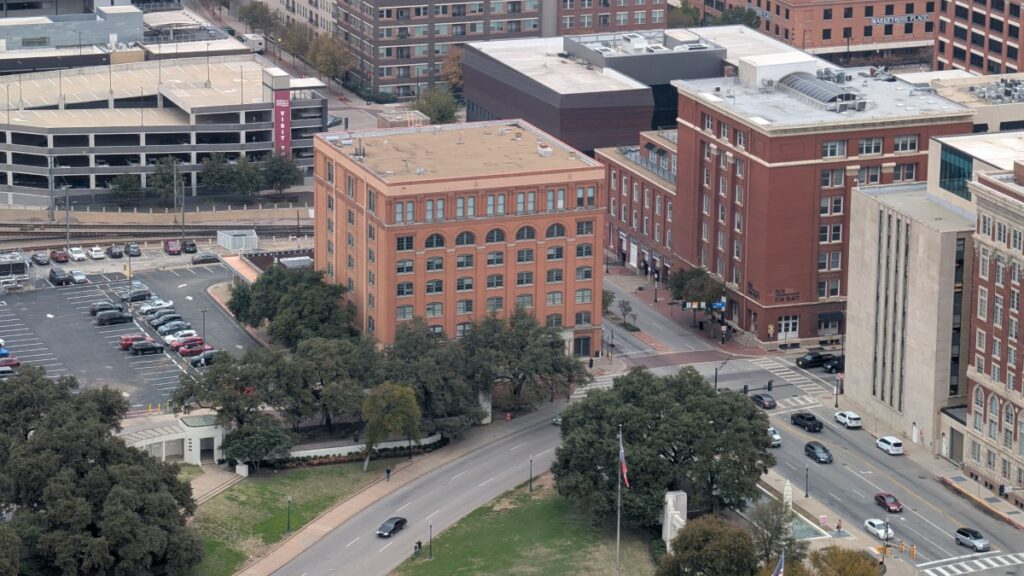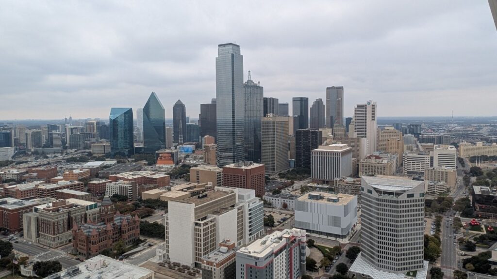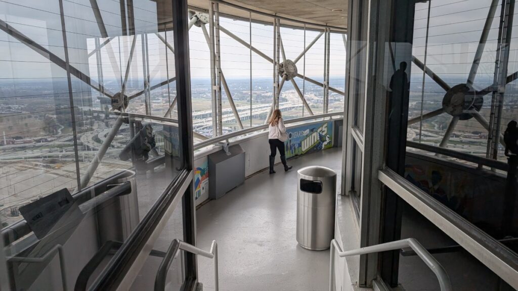 On the ride back, I bought a ticket for the Renunion Tower. You have to pick a time slot, so I didn’t dare to do it before I knew when I would return to Dallas. The tower is just beside the EBJ Union Station, so it was a short walk to the entrance, and after a picture (which was free!), I stepped into the elevator that took me 140 meters up in the air.