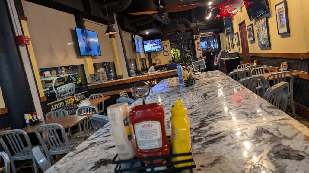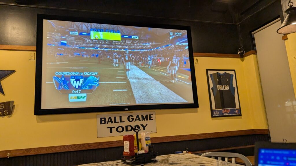 When I got back, I took a power nap since I was quite tired. Then I watched Dodgeball before heading out for some dinner. I had found Press Box Grill, where I hoped to see tonight’s game between the Detroit Lions and the Dallas Cowboys. In the intersection outside my hotel, just when I was about to cross, five police cars with lights and sirens showed up and parked in the corner. No clue what had happened, but I didn’t stick around to find out. It was cold, and I had a kick-off to get to.