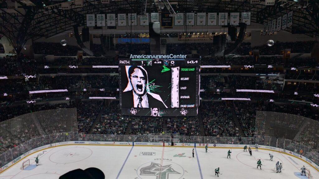 - When the puck is in play, it’s basically dead quiet. Unless their mascot bangs on his small drum, there is a goal, a “questionable” penalty, or a fight, you could hear someone shout, anywhere in the arena. Quite the difference compared to the NBA game, which had both music while the ball was in play and a speaker coaching the crowd, all the time.