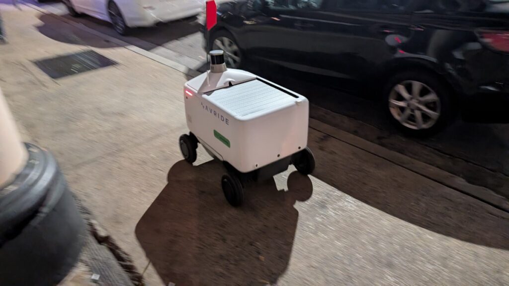 On my way back to the hotel, I met a delivery robot, I assume. Not Amazon, though, but Avride.