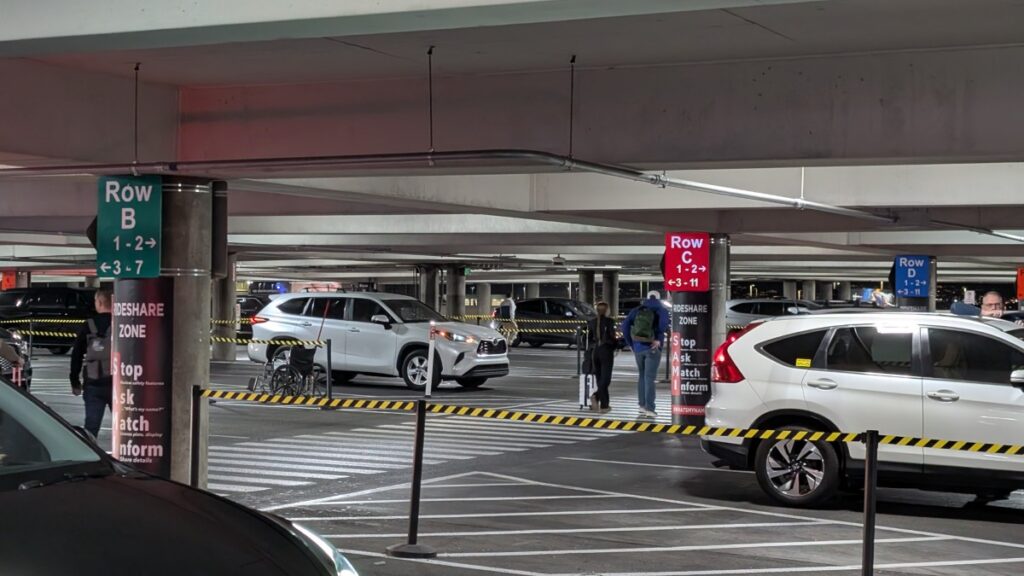 I got a notification that my luggage had arrived early. Since I dropped it off so early, it got sent on a previous flight. First time that happened to me. I had to find the American Airlines luggage office and pick it up there. When I got my suitcase and put my “overflow” backpack into it, I booked an Uber. The pickup spot was in a parking garage where they had set up six rows with 10 “bays” in each, and a waiting area for the customers. So when the driver arrives, he sends a message to the customer which row and bay he is waiting in, so you can easily find your car. Smart!