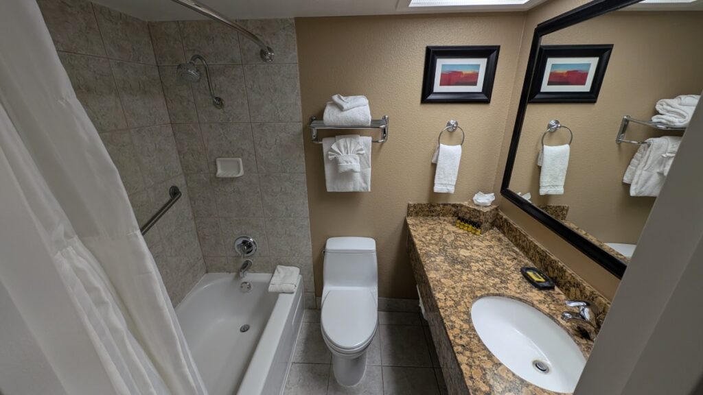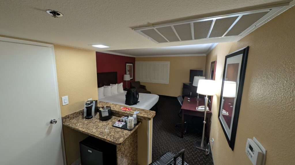 I had to navigate through a whole floor of different casino machines before I found the front desk of Best Western Casino Royale–Center Strip. If the receptionist in San Juan was “short, factual, and demanding”, this woman was more procedural. The rooms seem fine. First, I thought that the windows would be fake, but they are actually real! And there is a safe!