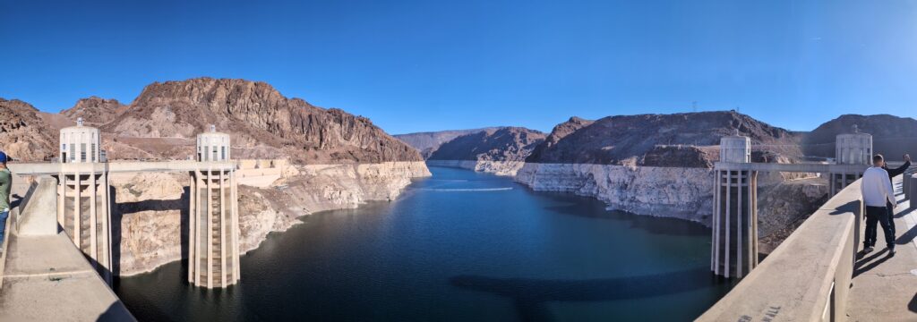 After managing to get out of the ten-story parking structure, the signage could have been better, I set off towards the Hoover Dam. Took just under an hour, and when I got there, I missed the parking, so I crossed the dam before I could turn around and leave the car where I was supposed to.